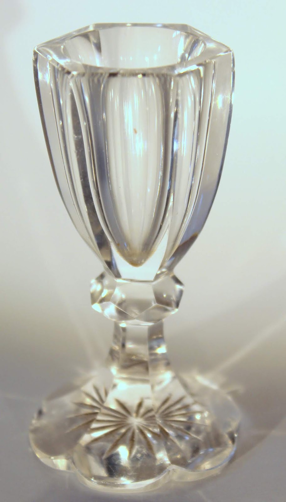 A cavidade é demasiado pequena para conter flores ou um ovo e lembrei-me de já ter visto paliteiros com este formato. Os catálogos que consultei não me permitiram identificar a fábrica. Parecia-me Baccarat, mas não o consegui provar.