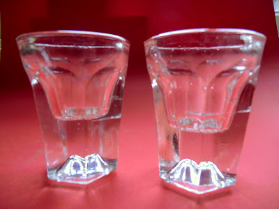O vidro espesso que caracteriza este tipo de copos não se destinava apenas a diminuir a possibilidade de quebra do vidro, tanto mais arriscada quanto se reduz a sua espessura. Tinha por fim enganar os clientes e servir uma menor quantidade do que este pensava estar a ingerir.