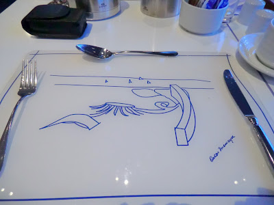 | Desenho de Niemeyer no individual do pequeno-almoço |