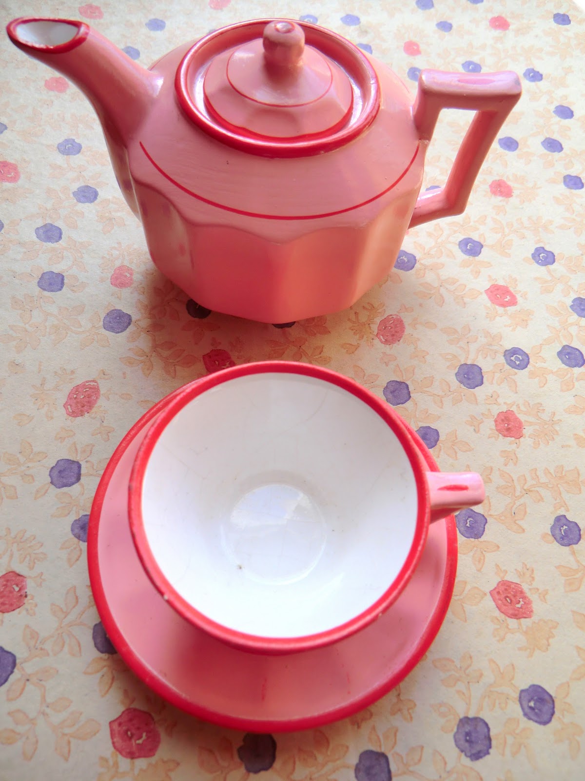 As palavras “Old Foley Pottery" passaram a ser usadas nas peças depois de 1955, pelo que acredito que é dessa data este conjunto de louça infantil.
