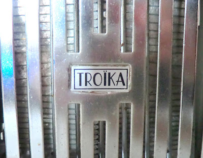 O que não sabem é que existem “troikas electricas” destinadas a fazer torradas. Eu também não sabia até me ter deparado com esta torradeira. Devo dizer que depois de várias buscas esta Troika se manteve um mistério para mim. Não encontrei qualquer referência. A única marca registada de artigos eléctricos que encontrei com este nome produziu também torradeiras e foi registada pela primeira vez em 1999. Situava-se em Brooklyn, Nova Iorque, e já não existe.