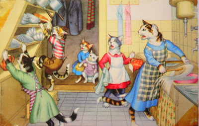Este belo cartão publicitário recortado, que me veio parar às mãos, com uma menina sentada à mesa acompanhada pelo seu cão e gato, quase parece um seguimento do post anterior.
